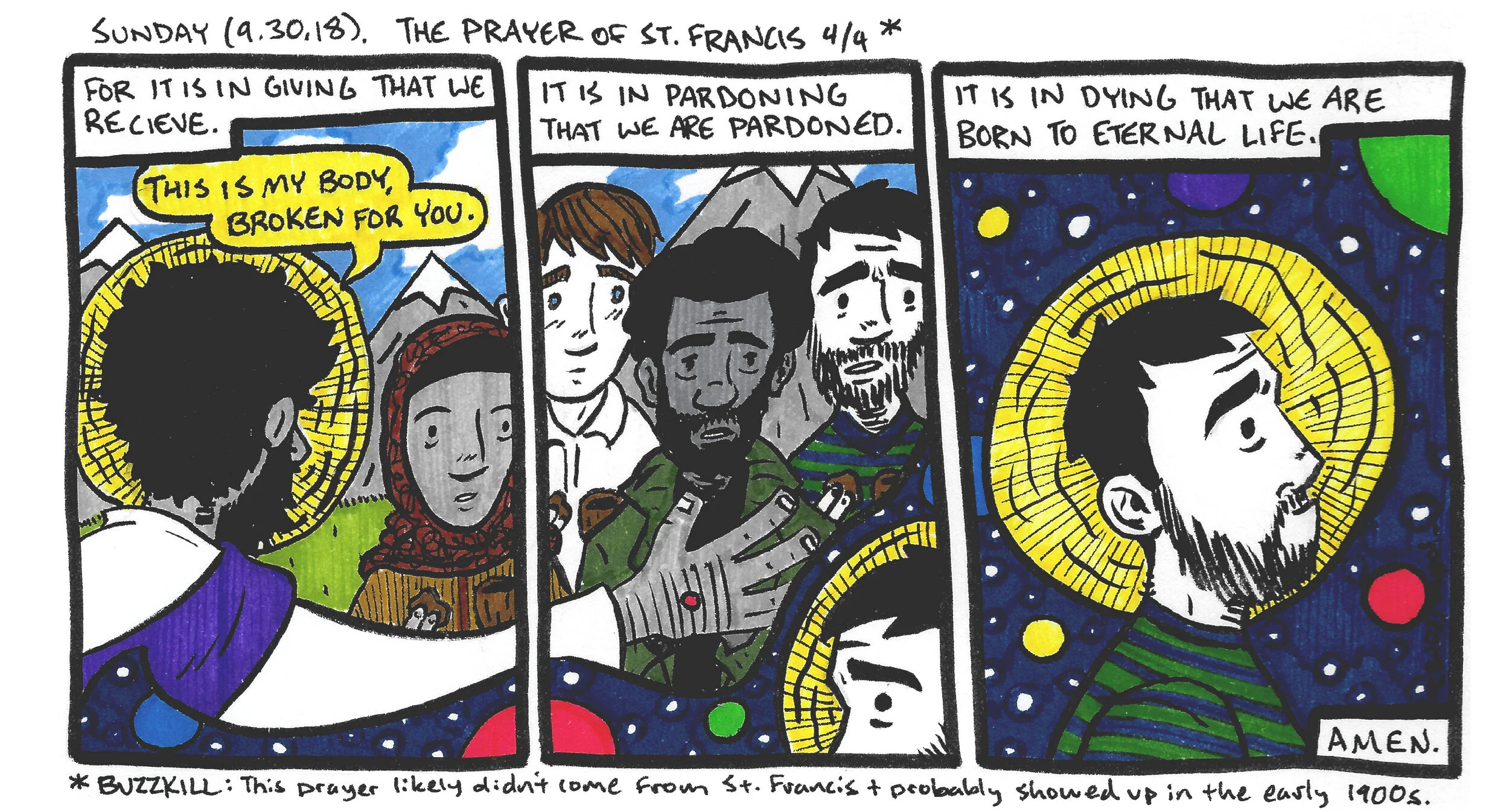 Contemplative Comics day 49 September 30, 2020 / Joshua Dease The Prayer of St. Francis 4/4(or perhaps more appropriately titled, the Peacemakers Prayer). Comment 0 Likes categories / Contemplative Comics tags / contemplativecomics