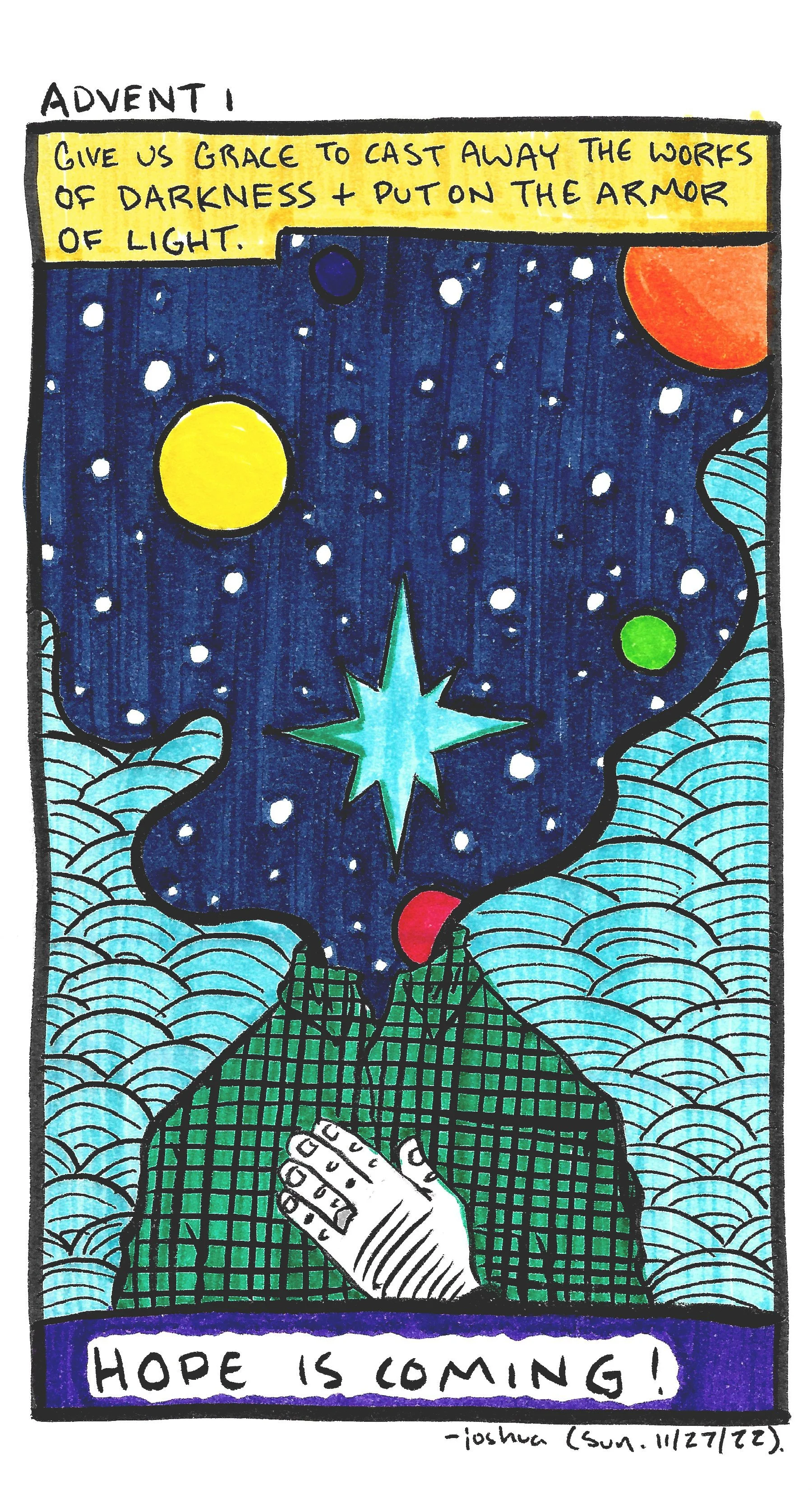 During Ordinary Time in the church calendar, I will produce 3 full strips per week. As a former Southern Baptist turned non-denom guy, annually practicing Advent and Lent has led me down a road to a deeper practice of my faith. As an artist, they have led to a deeper level of making art which has become transformed into a spiritual practice of contemplation, reflection, confession, and gratitude. Making these comics this way has transformed my emotional and mental wellbeing.