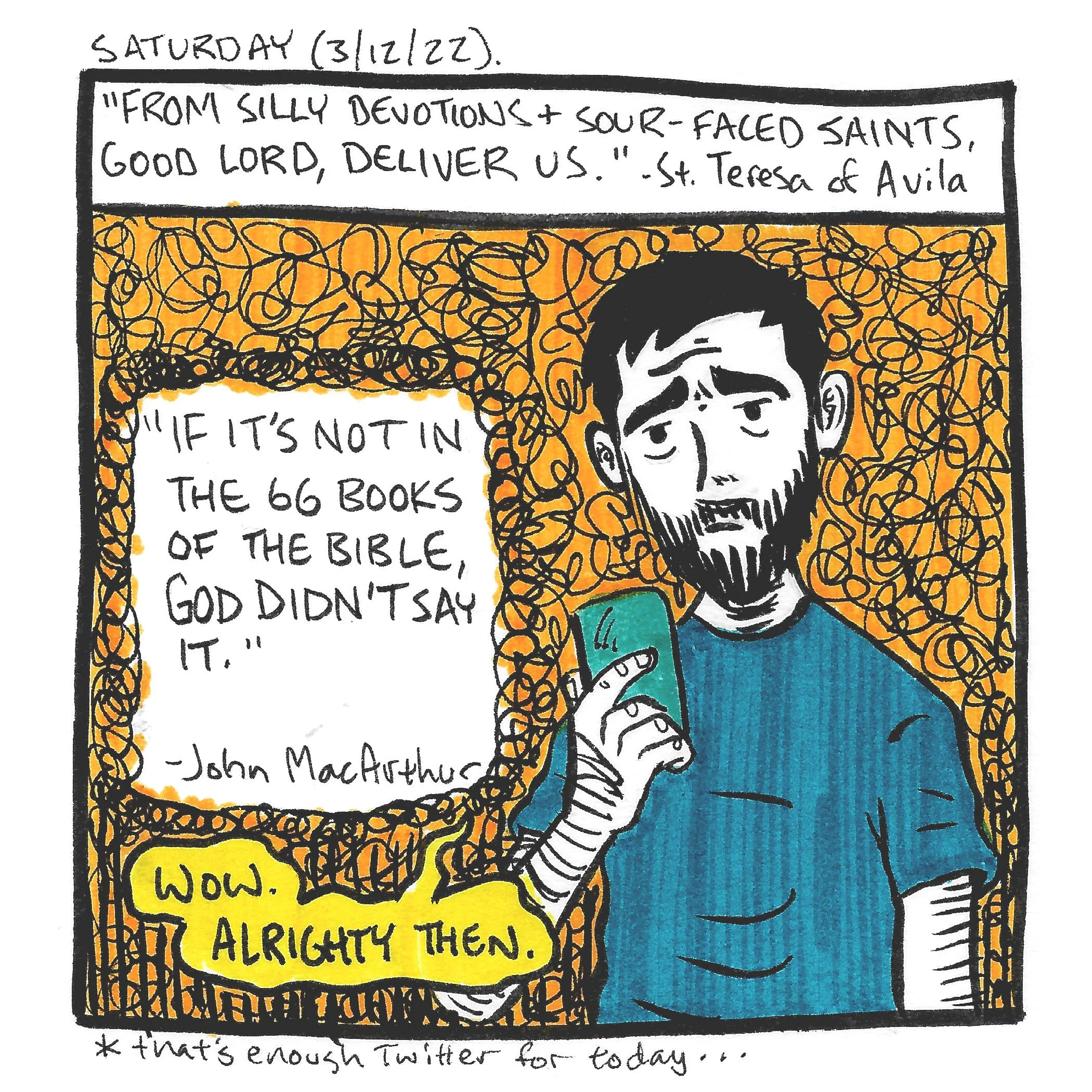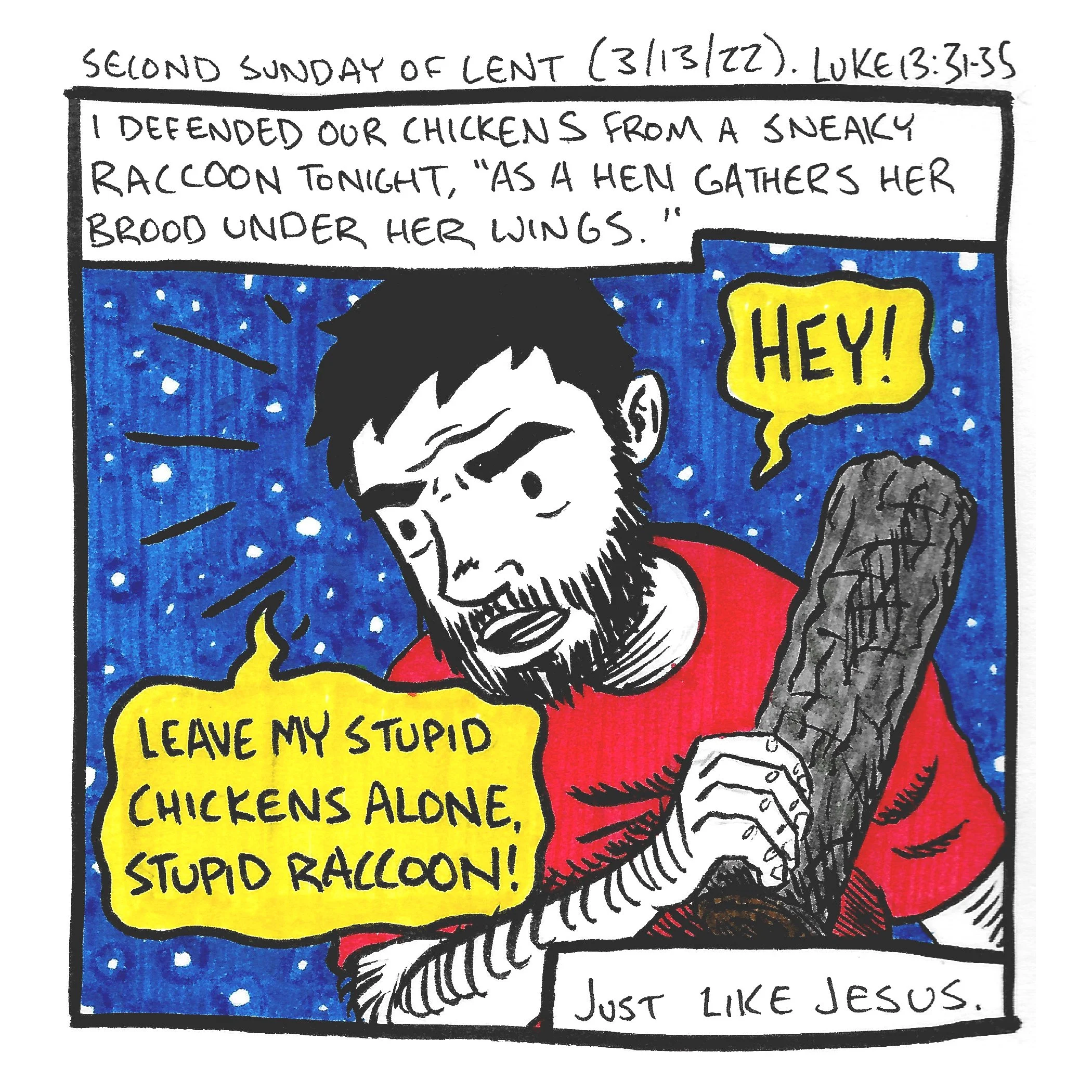 Some new comics in which I refer to J-Mac as a sour faced saint and battle neighborhood raccoons...