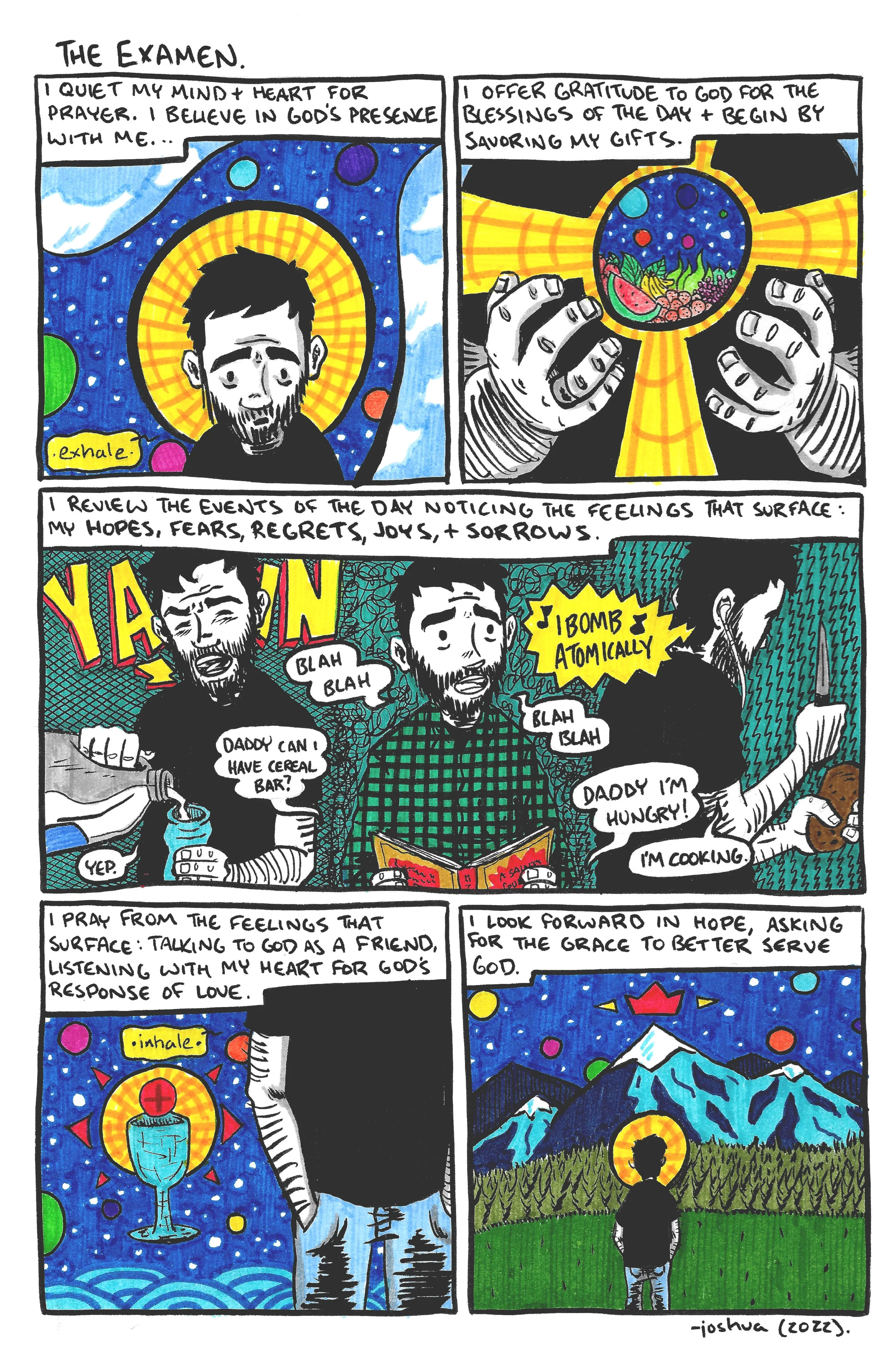 The Ignatian Examen is meant to break the business of your day with 15 minutes of contemplating God’s presence in the midst of your life and stress and joy. It is not meant to conjure God’s presence, but to remind us of God’s presence. God is here. Now. It is I who am distant. Distracted. It is I who forsake.