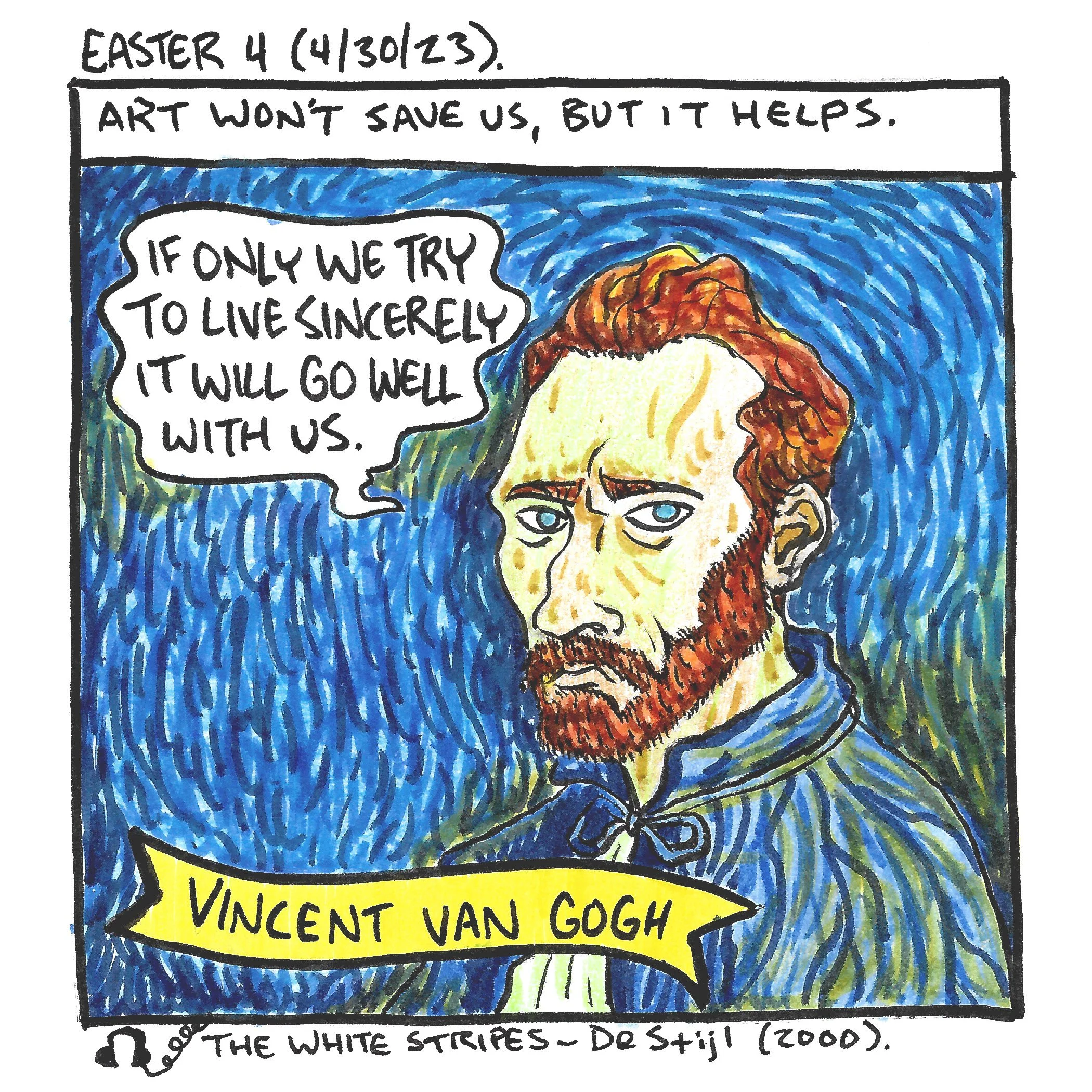 I was exploring the impressionists when suddenly I came face to face with Van Gogh's self portrait. Tears filled my eyes. I have been fascinated with his work for 20 years. To "look him in the eyes" like that was very unexpected. For me though, it was the texture and the brush strokes. I could see him making those brush strokes.