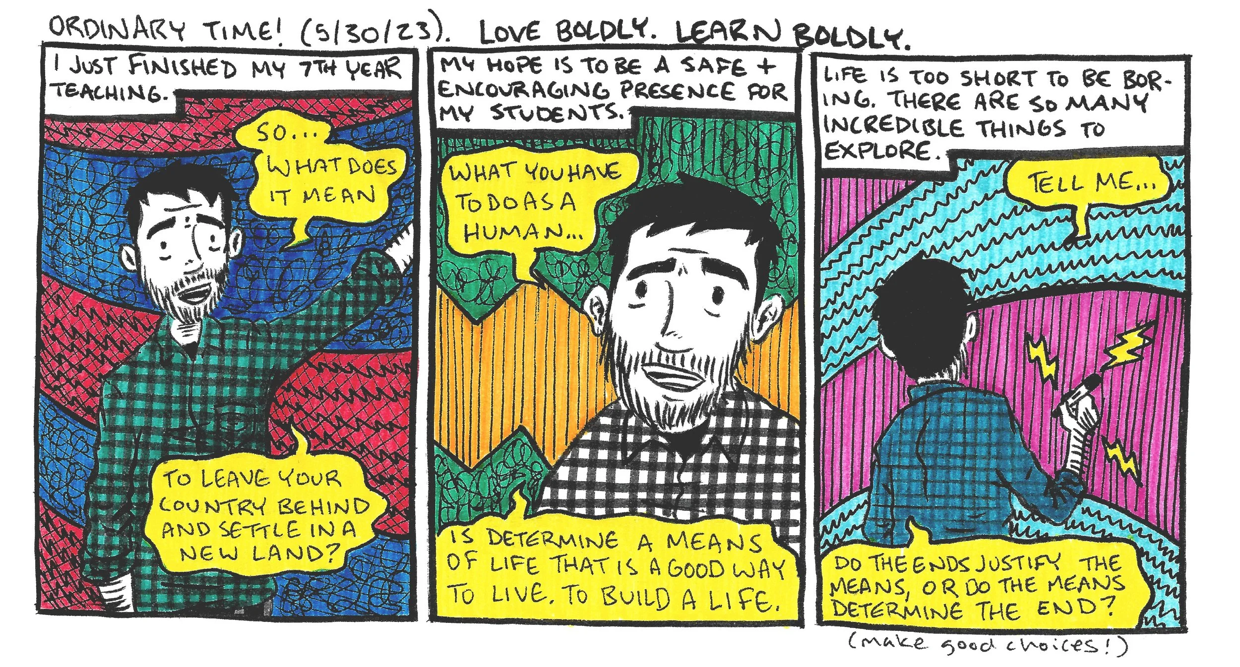 Teaching isn't a very sexy profession to draw, but I am a bit proud of this milestone, and I also found it helpful to remind myself of these streams of thought that my students and I explore throughout the year in our various subjects and books.
