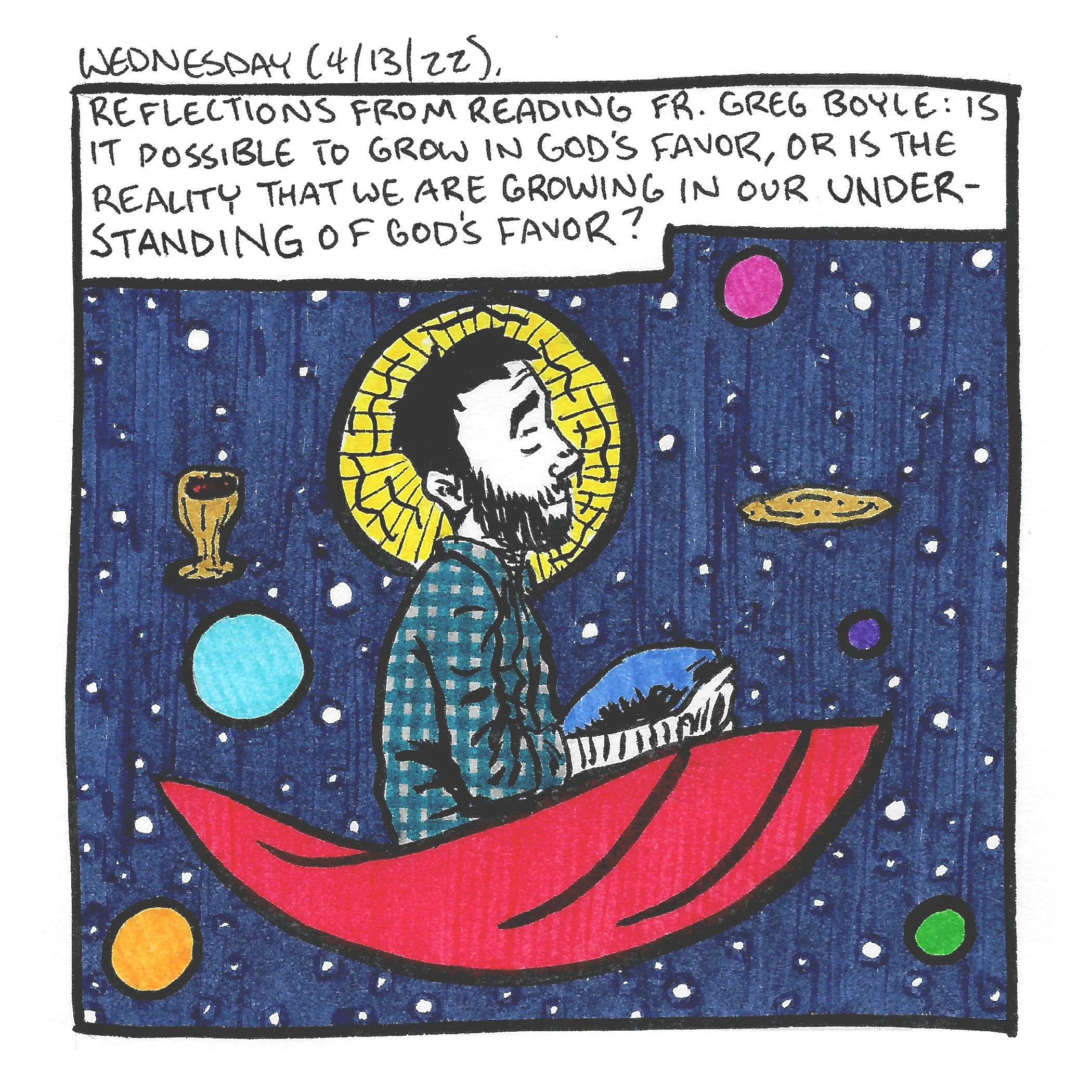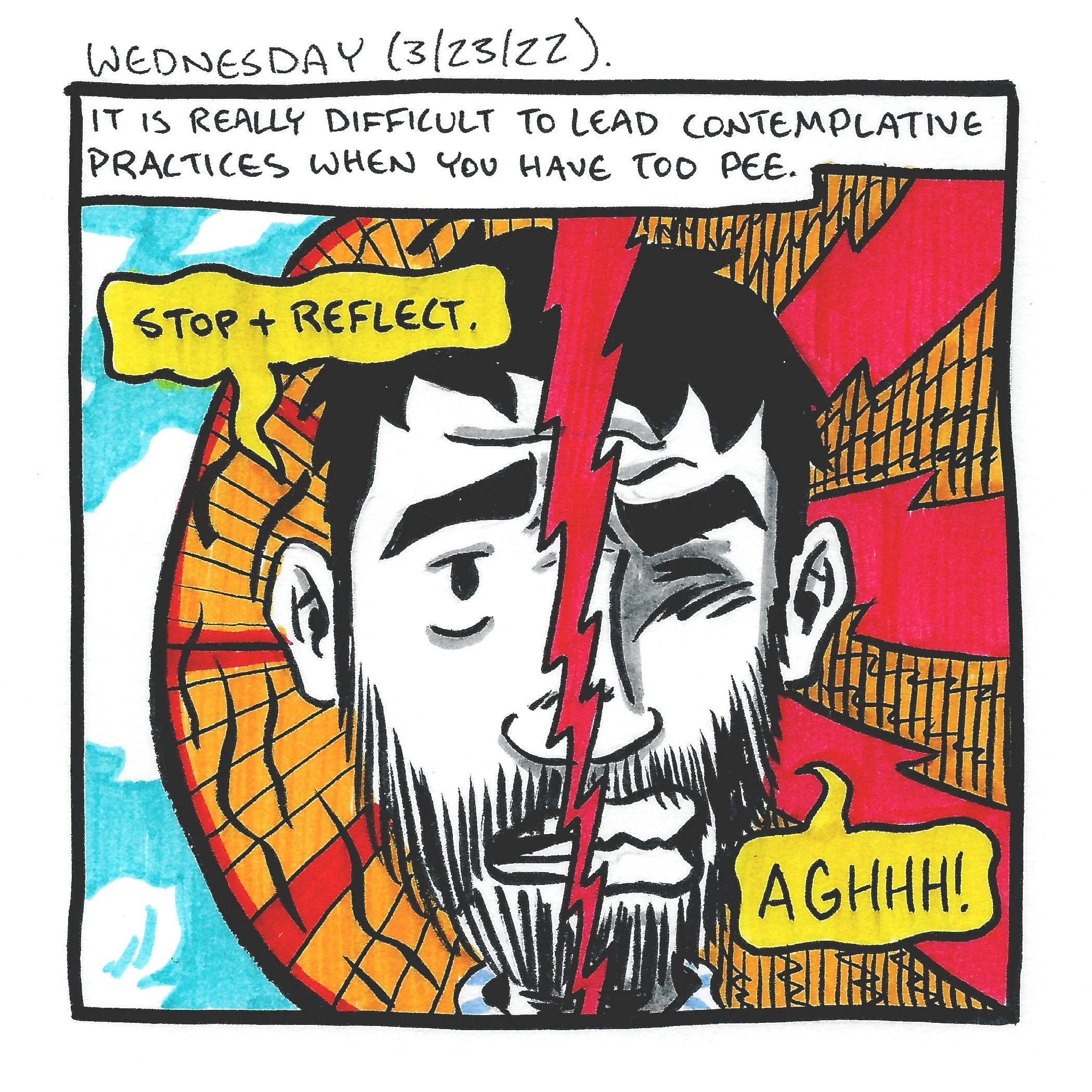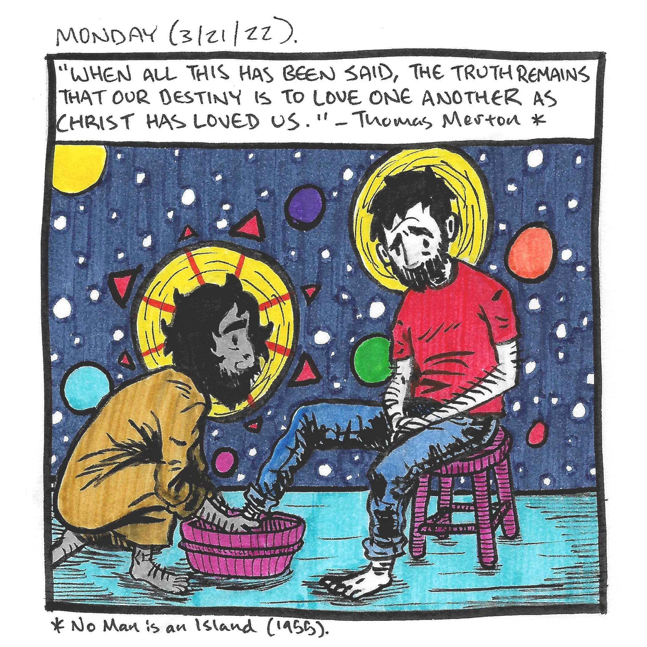 48 comics later, I have concluded my Lent project for 2022. After making a series of comics on the Stations of the Cross and dealing with my dad's death last year, it felt like a good idea to take a step back and make something that is more of a contemplation of life rather than death. It seemed fun to take on a paradoxical prayer journey through Lent this year because everything has been so heavy for the last few years. Everything still is heavy.