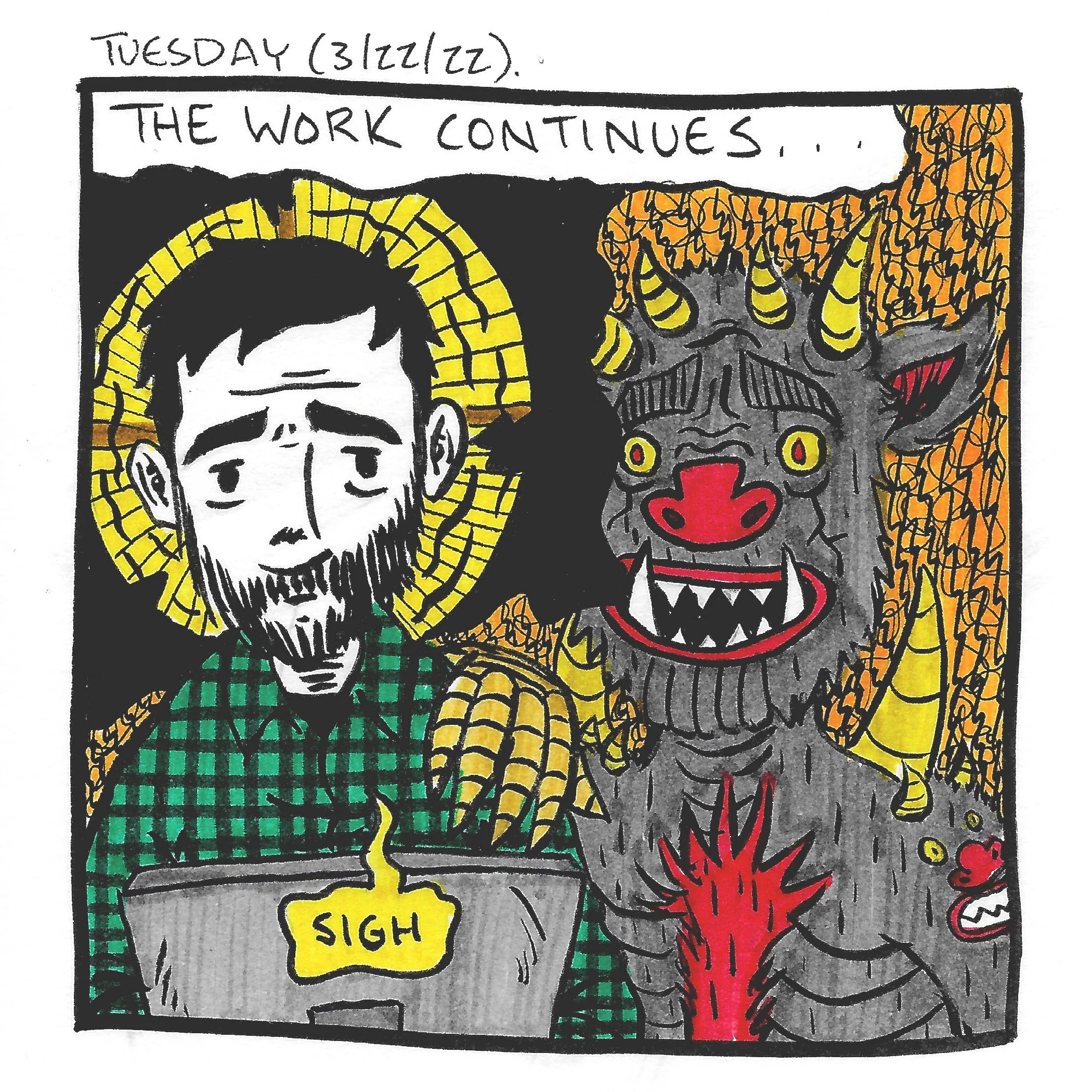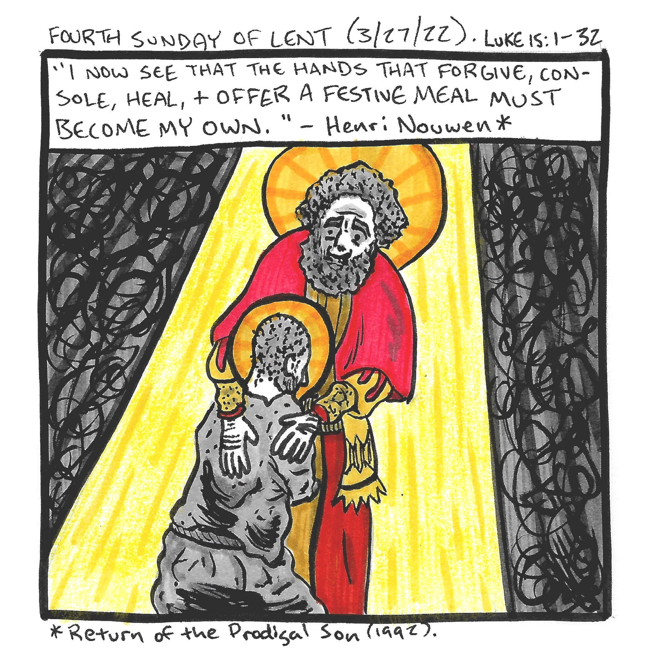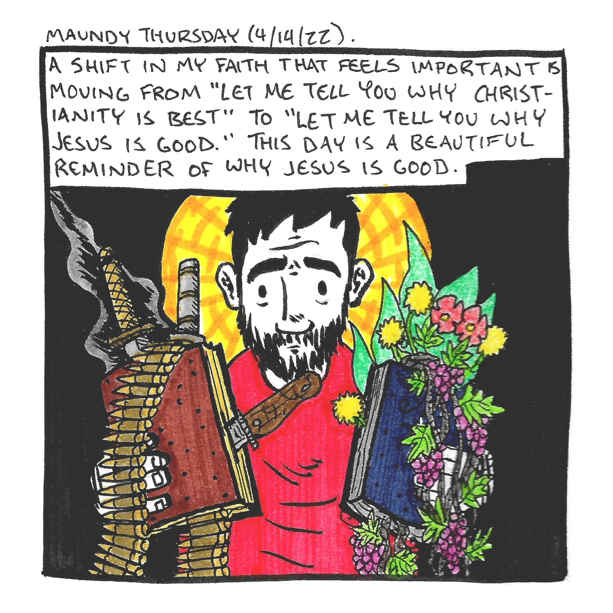 48 comics later, I have concluded my Lent project for 2022. After making a series of comics on the Stations of the Cross and dealing with my dad's death last year, it felt like a good idea to take a step back and make something that is more of a contemplation of life rather than death. It seemed fun to take on a paradoxical prayer journey through Lent this year because everything has been so heavy for the last few years. Everything still is heavy.